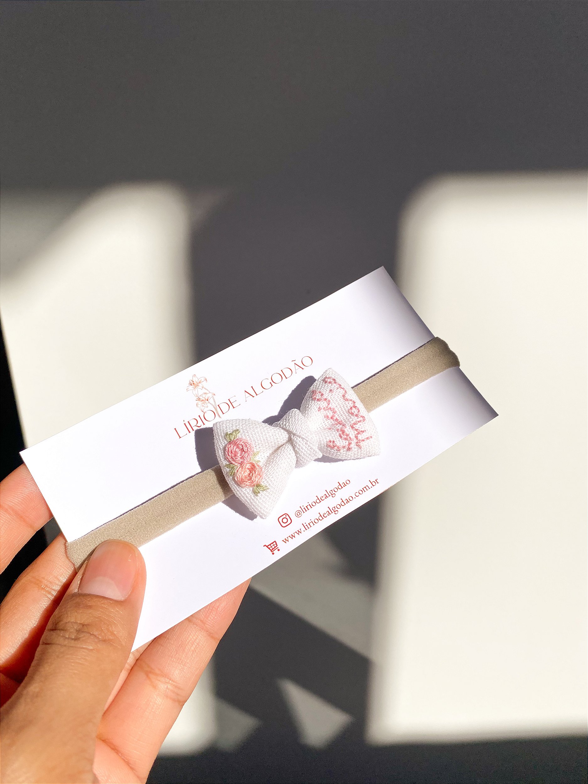 Somos uma loja de laços de tecido bordados a mão com muito afeto.