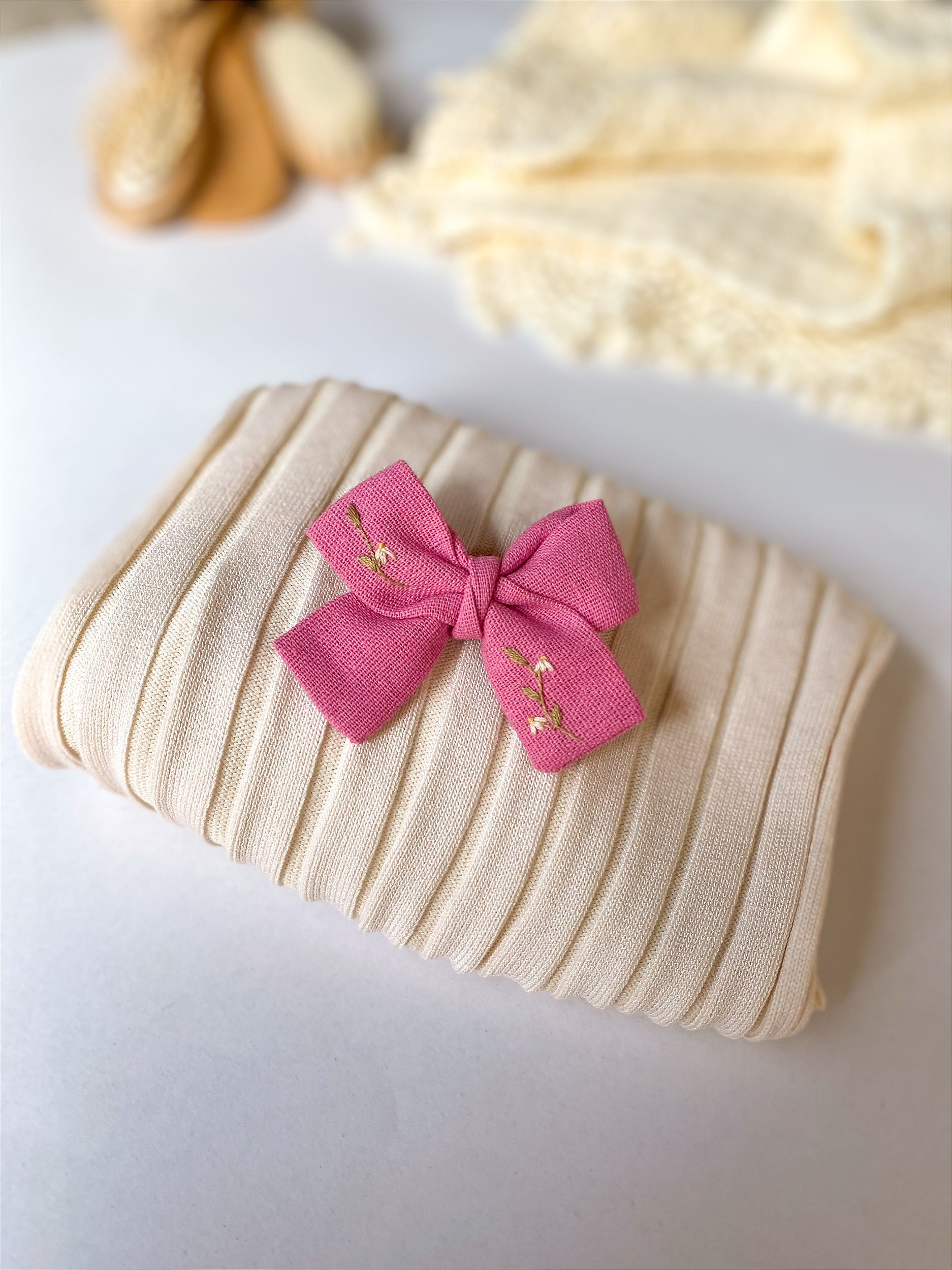 Laço de tecido de linho. Com arranjos bordados a mão.